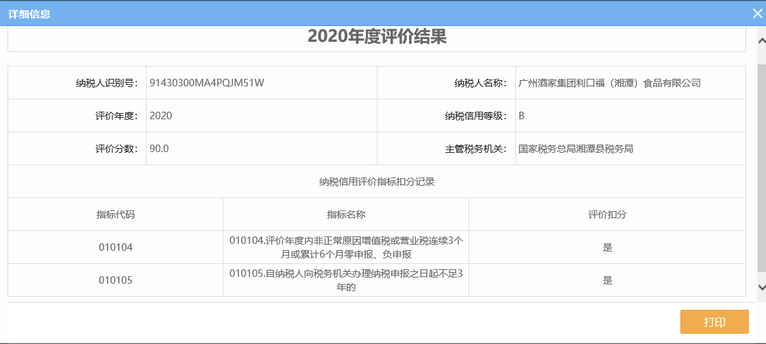 企業(yè)納稅信用等級報(bào)告: