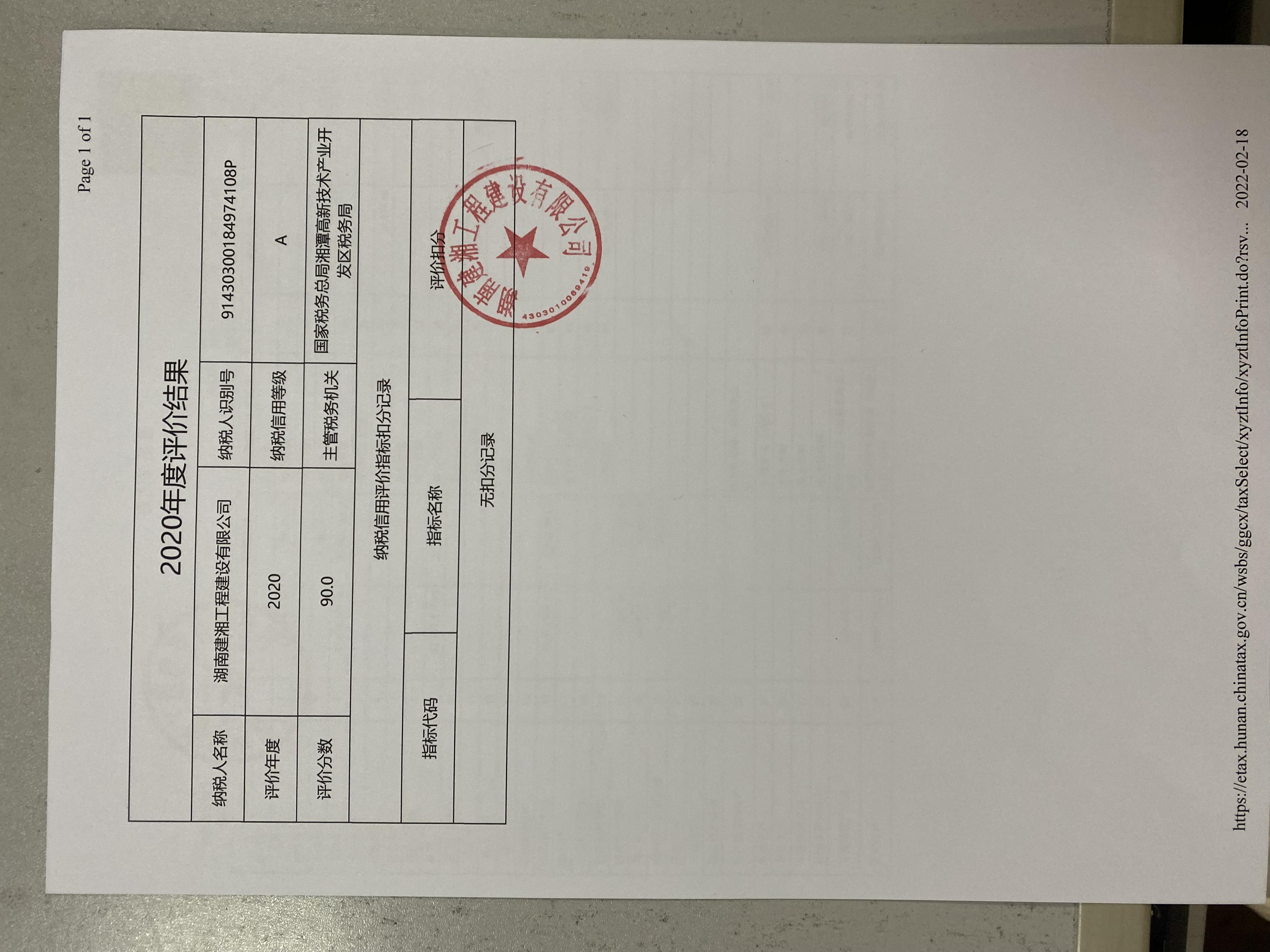 企業(yè)納稅信用等級報告: