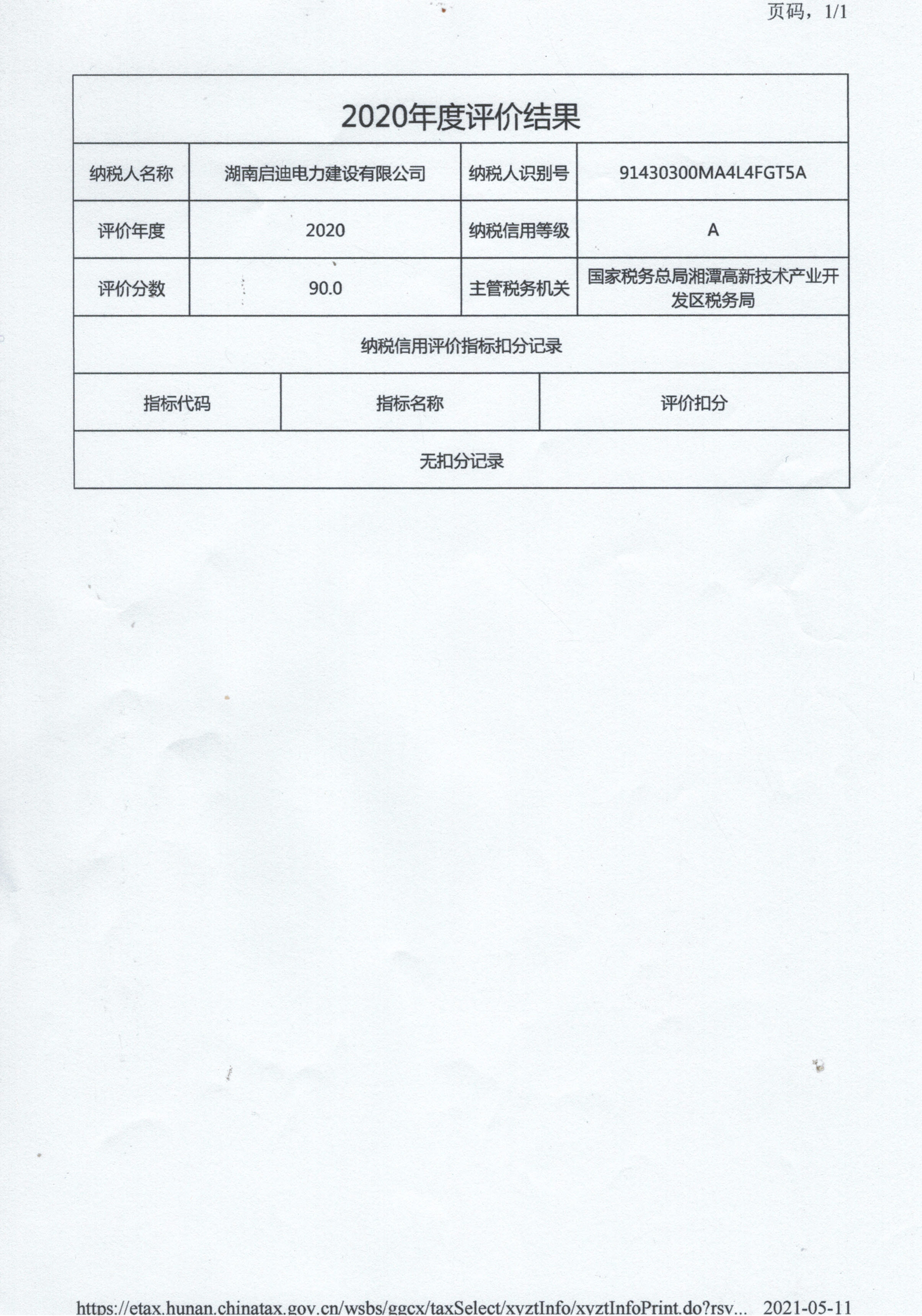 企業(yè)納稅信用等級報(bào)告: